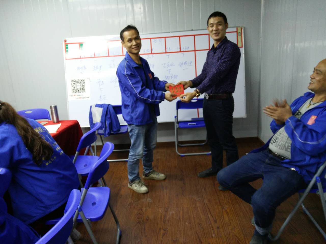 胡總經(jīng)理(右圖)為每月度最佳奉獻(xiàn)獎(jiǎng)榮獲者王成建(左圖)頒發(fā)獎(jiǎng)金,同時(shí)祝賀匯利興家人王成建榮獲雙星(八月、九月)進(jìn)而也感謝無(wú)私奉獻(xiàn)的匯利興家人,感謝他們的辛勤付出,有著每一位匯利興家人的無(wú)私奉獻(xiàn),相信匯利興定會(huì)越走越遠(yuǎn)。