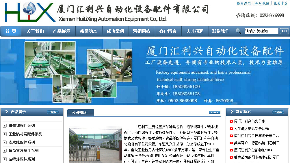 匯利興廈門(mén)公司注冊(cè)成立,這是匯利興集團(tuán)公司的里程碑,廈門(mén)公司位于同安區(qū)同安建材園48棟105-107號(hào),業(yè)務(wù)聯(lián)系方式0592-8669998/8679998 傳真:0592-8679998手機(jī):18506955108廖先生 18506955109 鐘小姐。 匯利興總公司位于廣東東莞,自建匯利興工業(yè)園12000平方,公司目前已相繼在江蘇昆山,廣東深圳,重慶、香港設(shè)立分公司。更好的服務(wù)、提供優(yōu)質(zhì)便捷的服務(wù),匯利興一直造福于自動(dòng)化設(shè)備制造廠(chǎng)商、電子設(shè)備廠(chǎng)商,各類(lèi)家用電器生產(chǎn)制造廠(chǎng)家,提供各類(lèi)別質(zhì)優(yōu)廉價(jià)的生產(chǎn)線(xiàn)配件,整廠(chǎng)自動(dòng)化生產(chǎn)線(xiàn)。匯利興一直領(lǐng)跑業(yè)界為客戶(hù)創(chuàng)造更高的價(jià)值,我們站在業(yè)界更高峰,匯利興不同凡響!