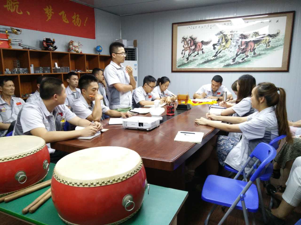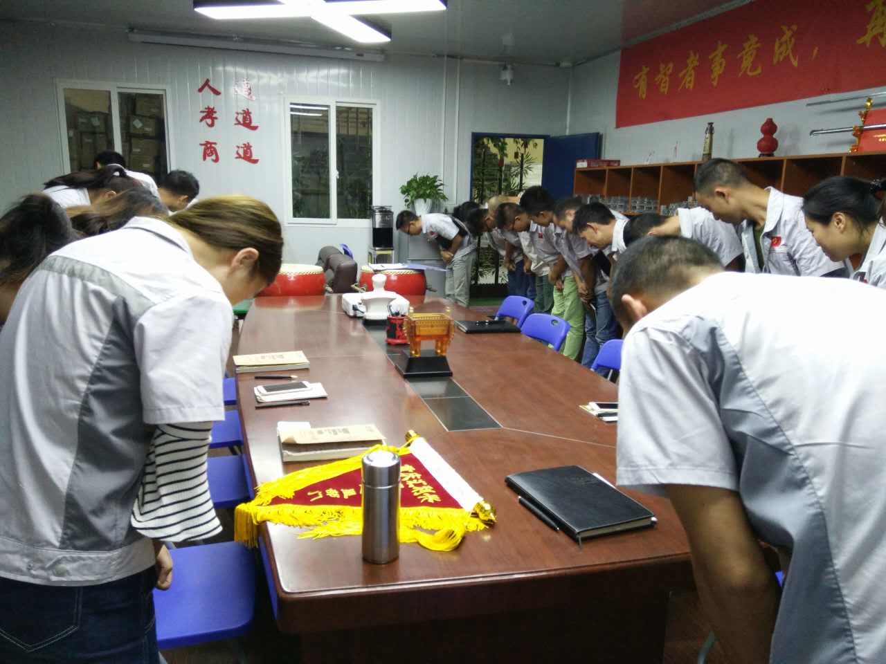 匯利興家人自我價值枰稱估量圖示 會議召開前,全體人員對企業三道“人道、孝道、商道”行三鞠躬,隨后以“士氣擊鼓”儀式正式進入會議主題。 全體員工向企業三道行三鞠躬 會議士氣擊鼓,士氣比武器更重要 會上,首先胡總經理對我司上半年度業績增長度做了相應的講解;其次對我司發展現狀做了相應的分析,并表示公司相關制度會隨著規模壯大不斷加之嚴格化;隨即提到公司人才倍增計劃、匯利興品牌影響力度及公司員工福利事宜,并表示在前進及壯大的基礎上必經“改革”之路,推陳出新、不斷創新。隨后,各部門主管依次對上季度做簡短述職,檢討不足分享經驗;最后會議以每月最佳部門獎及月度之星的頒選而落下帷幕。 每月最佳部門獎與月度之星,是一份激勵與鼓舞,是一份責任與擔當,是一份愛與認可;正是這份公司的激勵、自我的責任、同事的愛,使匯利興家人更加團結與奉獻,默默付出與努力,讓這個家越來越壯大。此次最佳部門獎為“客服部”,月度之星“周長發”家人,在此感謝他們的付出與努力,讓我們用最堅韌的力量一起奔向心中的藍天。 胡總經理(圖左)與月度部門“客服部”代表人蒲經理(圖右)合影 胡總經理(圖右)與月度之星周長發(圖左)家人合影
