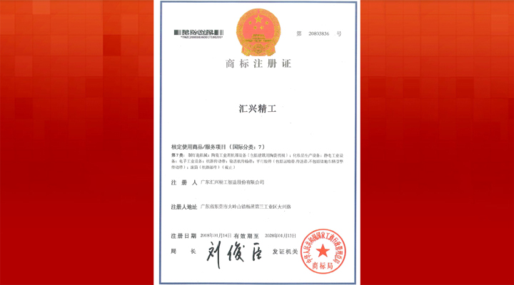陽春三月,萬物復蘇。廣東匯興精工智造股份有限公司的喜訊就如鮮花綻放、嫩芽出頭,一個接一個,讓人應接不暇。3月13日,一份商標注冊證書飄然而至。這為“匯興精工”的商標注冊證書已經是中華人民共和國國家工商行政管理總局商標局為匯興智造簽發(fā)的第9份商標注冊證書。 匯興智造立志成為中國領先的整廠自動化系統(tǒng)解決方案提供商,一直不忘初心,不斷優(yōu)化產品質量,堅持研發(fā)攻克新技術,打造開發(fā)新產品,加速轉化新成果。在做大做強的過程中,強烈地意識到知識產權和品牌建立的重要性,所以,成立了知識產權部門,投入大量人力、財力來保護自主創(chuàng)新、知識產權和品牌構建。 商標注冊,為匯興智造樹立了品牌、建立了口碑。在每一個匯興人心中都有一個愿望,那就是打造一個“百年老店”。“創(chuàng)于手 精于工 智于器 匠于心 品于行”是匯興智造奉行的工匠精神,匯興人在匯興工匠精神的影響下,勤修內功、精益求精地培育著匯興人心中的“百年老店”。 “十年磨一劍”,匯興智造以提升品質為根本,下大力氣做真正的好產品,由產品制造走向了產品智造,將向精品制造進發(fā),提高品牌的含金量,做出 “匯興百年老店”的金字招牌。(轉載匯興智造http://www.huixinggroup.com)