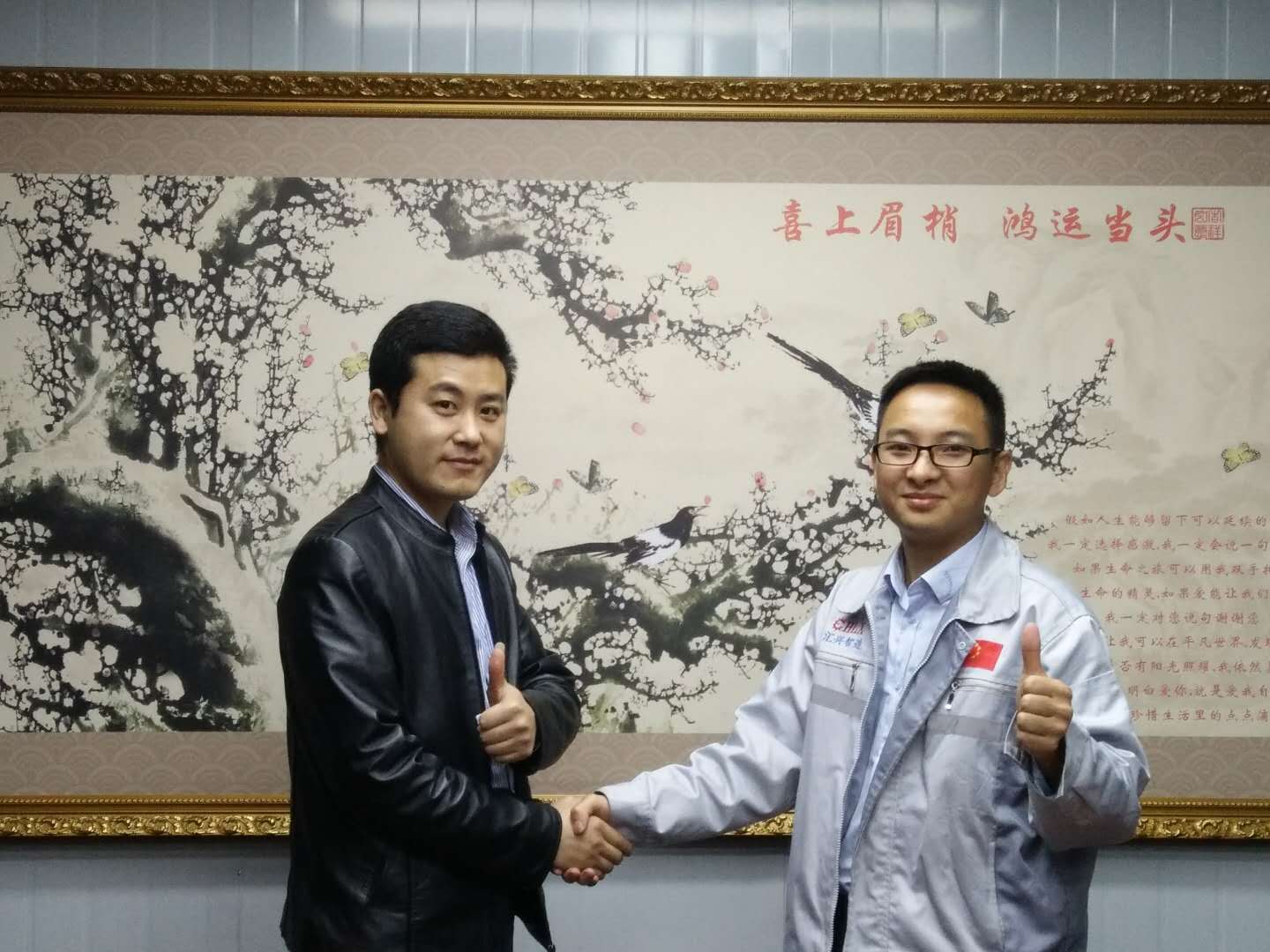 企業文化大使小敏正在為客人介紹匯利興文化 在此,客服部小敏(企業文化大使)為來訪的客人們相繼介紹了我司的企業文化,并帶領客人參觀了匯利興廠容廠貌,詳細介紹了匯利興的發展史及企業文化(三道:人道、孝道、商道,企業精神:用情做人、用心做事),并帶領客人初步了解了工業鋁型材、滾筒、精益管、工裝板、精密工業配件等材料的認識,同時介紹了我司企業愿景:誓力打造中國自動化配件第一品牌,更好的滿足客戶個性化定制和柔性化生產;此后對于匯利興濃厚的企業文化及厚重的企業實力,一致獲得了客人們高度的贊許及認可并表示與匯利興合作十分放心。 客人與匯利興家人合影圖 客人為“喜上眉梢、鴻運當頭”錦上添花圖景 “相識滿天下,知心在匯興”,來訪客人受邀相繼在“喜上眉梢 鴻運當頭”留下深刻的印記,為此錦上添花。“欲常常而見之,故源源而來”,相聚匯利興,故交友于匯利興同友人一起共發展共進步。