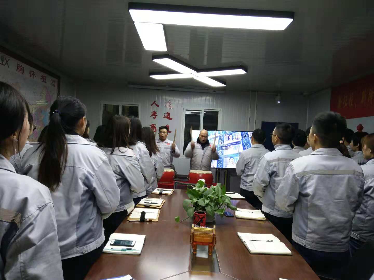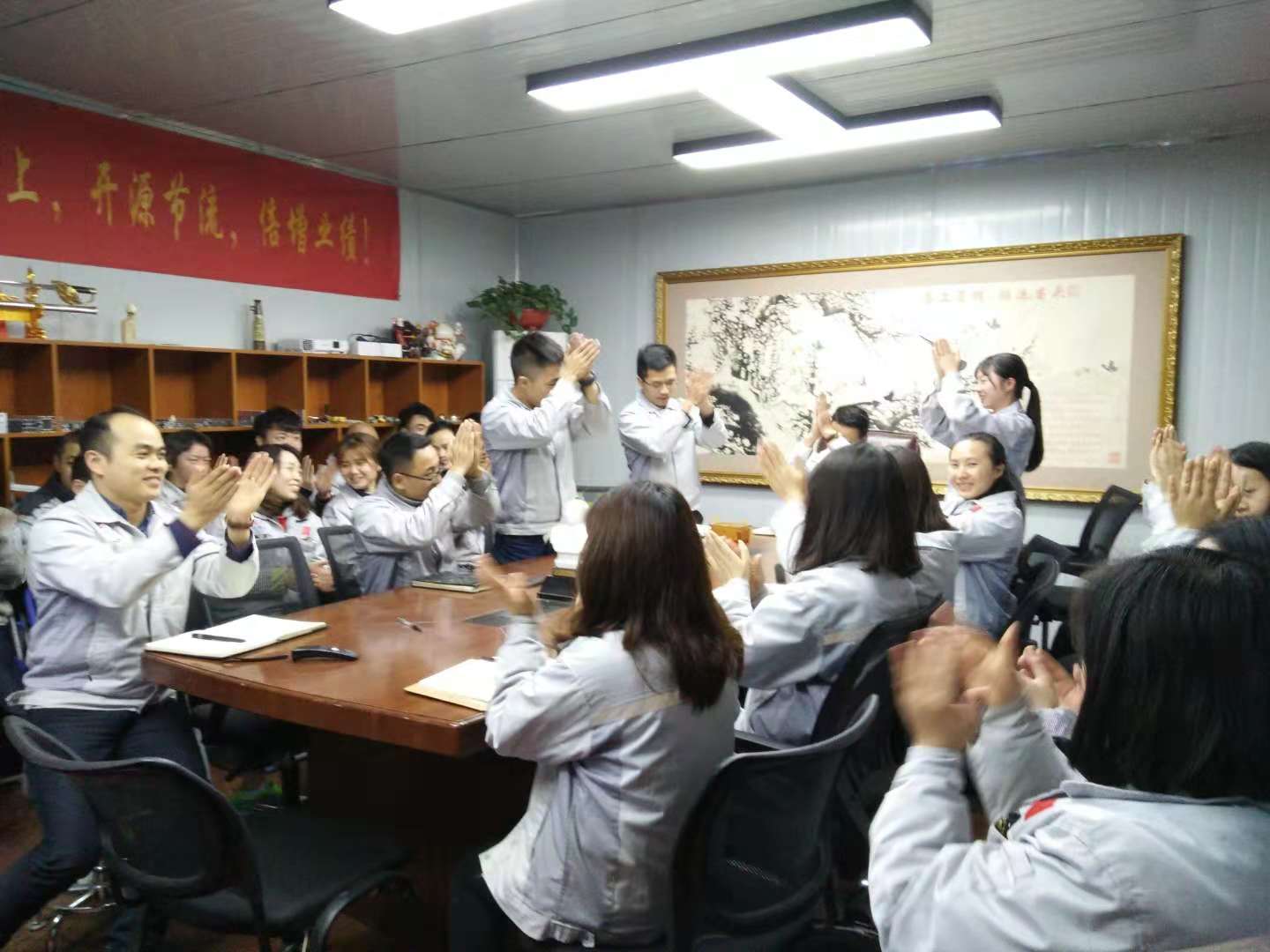 企業(yè)三道“孝道、商道、人道”行三鞠躬 擊士氣鼓,士氣比武器更重要 會(huì)議第一項(xiàng)議程:嘉獎(jiǎng)環(huán)節(jié)-優(yōu)秀部門,優(yōu)秀員工評(píng)選。本月度優(yōu)秀部門“物控部”,月度之星“熊學(xué)斌”,他們用行動(dòng)告訴我們什么是阿甘精神,什么是責(zé)任,在此祝賀他們同時(shí)也感謝他們的辛勤付出,感謝大家的付出,相信在僅有的2018年里,我們定會(huì)創(chuàng)造奇跡。 月度之星和優(yōu)秀部門獲得者合影圖 第二項(xiàng)議程:由我們的行政主管陳香草宣導(dǎo)倡議書,勉勵(lì)大家:“付出不一定有收獲,但不付出是一定沒有收獲”,其次感謝大家在工作崗位上的無(wú)私奉獻(xiàn),號(hào)召大家在2018的短短18天里面繼續(xù)努力,勁往一處使,心往一起靠,全力以赴,不忘初心、砥礪前行。同時(shí)宣導(dǎo)公司年會(huì)籌備事宜,并倡導(dǎo)大家踴躍參與,辦一個(gè)熱熱鬧鬧與眾不同的年會(huì)。 會(huì)議圖景一 第三項(xiàng)議程:胡偉路總經(jīng)理作會(huì)議總結(jié)及未來(lái)展望。會(huì)上,胡偉路總經(jīng)理提到“三心二力”,對(duì)自己的信心,跟進(jìn)客戶的耐心,拿下訂單的決心,對(duì)規(guī)矩的執(zhí)行力,團(tuán)隊(duì)協(xié)作的戰(zhàn)斗力;希望大家在最后的18天里以奉獻(xiàn)自身的力量,自身協(xié)作能力全力沖刺,完成好每一份訂單。在2018的最后一個(gè)月請(qǐng)各個(gè)部門主管做好總結(jié)與反思,用最大的力量助力公司,為我們的2018畫上一個(gè)完美的句號(hào)。 會(huì)議圖景二 最后,全體匯興人起立,整肅衣冠,眾志成城齊喊“為夢(mèng)想沖刺,我是匯利興的一名忠誠(chéng)戰(zhàn)士”,整個(gè)會(huì)場(chǎng)環(huán)繞著吶喊聲,現(xiàn)場(chǎng)激情澎湃、士氣高昂、振奮人心。
