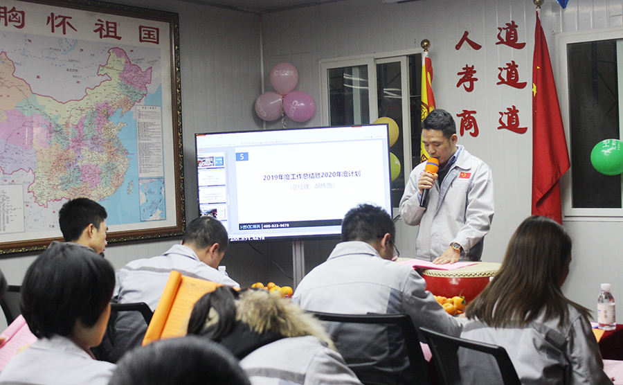 會(huì)議第二項(xiàng)議程,胡總經(jīng)理做2019年工作總結(jié)暨2020年工作規(guī)劃。胡總談到,2019年是充實(shí)且忙碌的一年,在這一年我們實(shí)現(xiàn)了企業(yè)規(guī)模的跨越,成功入駐西彭標(biāo)準(zhǔn)工業(yè)園,同時(shí)強(qiáng)調(diào)在2020年,經(jīng)濟(jì)下行的市場(chǎng)環(huán)境下,可以預(yù)料和難以預(yù)料的風(fēng)險(xiǎn)挑戰(zhàn)會(huì)更多更大,因此全體人員必須提高戰(zhàn)斗意識(shí),做好打攻堅(jiān)戰(zhàn)的準(zhǔn)備,切實(shí)抓好開源節(jié)流各項(xiàng)工作,確保公司實(shí)現(xiàn)經(jīng)營(yíng)指標(biāo)的跨越,完成整體團(tuán)隊(duì)目標(biāo)。胡總談到,在面對(duì)充滿挑戰(zhàn)的2020年,我們需要腳踏實(shí)地走穩(wěn)每一步,全力以赴為公司添彩,為匯興智造集團(tuán)20周年華誕獻(xiàn)禮。