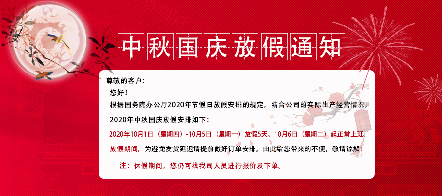 根據國務院辦公廳2020年節假日放假安排的規定,結合公司的實際生產經營情況,2020年中秋國慶放假安排如下: