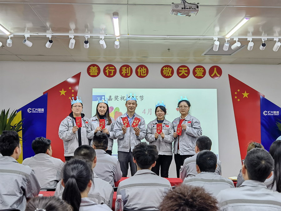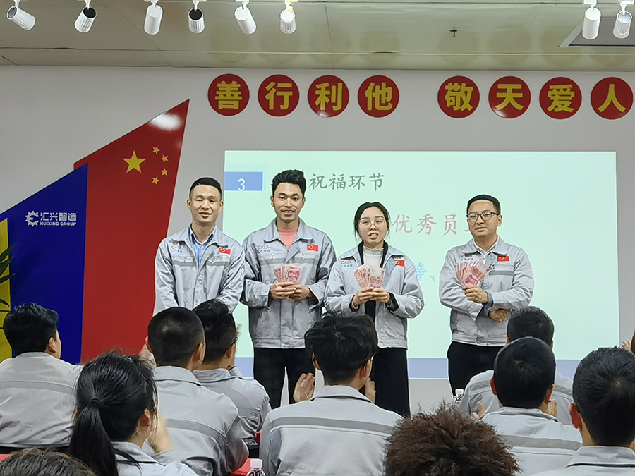 業精于勤,荒于嬉,行成于思,毀于隨。總結上個月工作情況,統籌下一個月工作計劃。匯利興西南工廠于4月9日18點40分,在匯利興學校召開三月月度會議。銷售主管劉文主持,匯利興西南工廠全體職員參會。會議開始,兩位高管敲響士氣鼓,敲響我們出征的號角,前進的戰鼓,鼓舞著每位員工沖鋒打勝仗的決心和毅力。全體員工向企業三道孝道、商道、人道鄭重鞠躬,宣讀企業文化,并對本月新入員工進行歡迎儀式。 春天是播種的季節,同時也是催人奮進的季節。為了表彰在三月份表現突出的優秀個人、優秀主管、優秀部門,充分發揮引領示范作用,最大限度調動和激發員工向優秀人員看齊、不斷提高工作的積極性和創造性。本次榮獲優秀員工(曾濤、邵靜、鄧筵暉)、優秀主管(姜英)、優秀部門(綜合部)。自成立以來,公司大力宣導我來干、努力干、拼命干的工作作風,積極鼓勵無私奉獻、恪盡職守的三好匯興人,并堅持打造一支有愛、有力量、有活力的團隊。