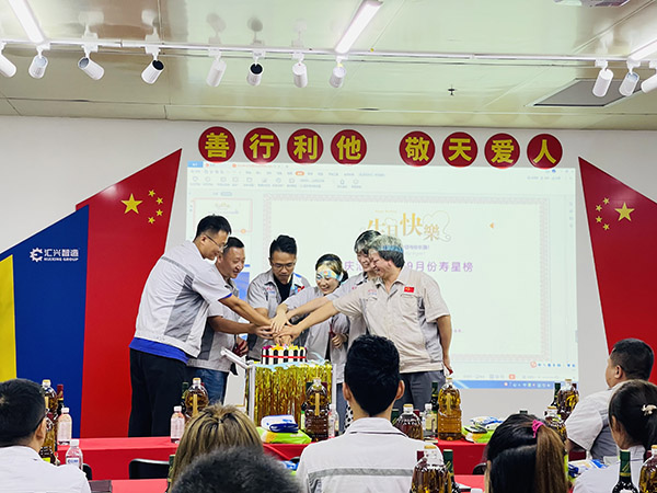 與時光握手,與歲月言和。成長不期而遇,用真切的祝福拉開壽星們的生日會,不僅讓壽星們的生日過得更有意義,也使每一位員工都能切身的感受到公司的溫暖和領導的用心,也讓每個人所經(jīng)歷的平凡歲月里,都可以連續(xù)發(fā)生不一樣的驚喜。再次祝福壽星們生日快樂! 會議第五項,胡偉路總經(jīng)理講話。首先胡總經(jīng)理感嘆時光飛逝,歲月如梭,驀然回首,已到初秋之際,2021年僅剩下僅有的100多天,在這攻堅的三月里,全體員工仍需拿出“紅軍不怕遠征難 萬水千山只等閑”的民族氣概,朝著我們的目標拿出我們的士氣卯足勁兒的向前沖;其二、胡總經(jīng)理向全體員工展示公司中秋禮品并解析禮品寓意(柴、米、油、鹽、醬、醋、茶),以生活中不可缺之的物品讓全體員工深刻感受到公司的關懷和關愛,并從側面宣導全體員工在工作崗位中,對待同事要有溫度,對待工作要有態(tài)度;花若盛開,蝴蝶自來,你若精彩,上天自會安排;其三、通過一則短視頻向全體員工宣導反哺之恩 、舐犢之情,進一步勉勵全體員工要有一顆感恩的心,感恩身邊的人;其四、創(chuàng)立夢想基金,鼓勵員工加大產(chǎn)值賦能,為公司為個人謀福利;同時也進一步勉勵全體員工,“寶劍鋒從磨礪出,梅花香自苦寒來”,只要我們一起努力,相信我們一定會實現(xiàn)我們的目標,讓我們一起擼起袖子加油干!
