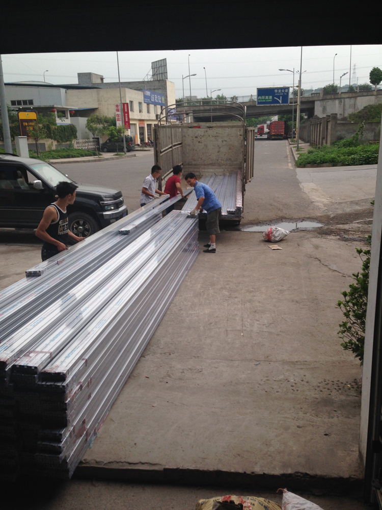 昨日上午,客戶訂購的5050鋁型材到貨,上午才卸下貨,中午就叫來物流公司,伙伴們以最快的速度把貨裝上車,為的就是能把產品盡早的送到客戶手上