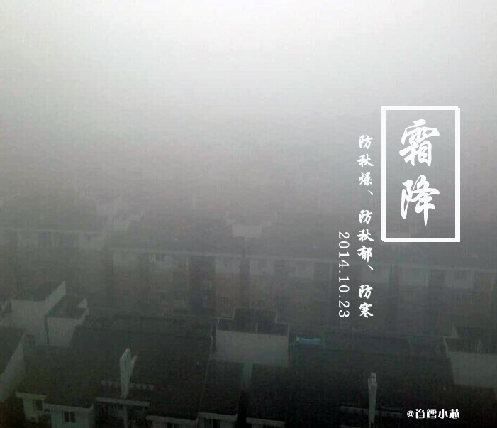 今日霜降,“秋凍”該結束了,寒露不算冷,霜降變了天。霜降,隸屬秋的最后一個節氣,此時節正值秋冬過渡之際,天氣開始寒冷,氣候日趨干燥。霜降后天氣逐步像冬天靠近,“秋凍”該結束了,應適時增加衣物,注意下肢、腹部、足部保暖,尤其是老人小孩更要注意。 防秋燥、防秋郁、防寒是霜降期間的健康防護重點。秋燥表現為口干、唇干、咽干、便秘、皮膚干燥等。因此應多吃芝麻、蜂蜜、銀耳、青菜、蘋果、香蕉等滋陰潤燥食物。晚秋時節的肅殺景象容易引人憂思,使人意志消沉、抑郁。應適當多吃高蛋白食物,如牛奶、雞蛋、羊肉和豆類等;還要適當參加一些有益身心的娛樂活動,如歌舞、登山等集體活動。另外,這個季節不是人人適合“秋凍”。對抵抗力差的老年人,應及時關注天氣,按時增減衣服,以免濕邪、寒邪入侵,導致生病。 下一個節氣:立冬,你準備好了嗎?
